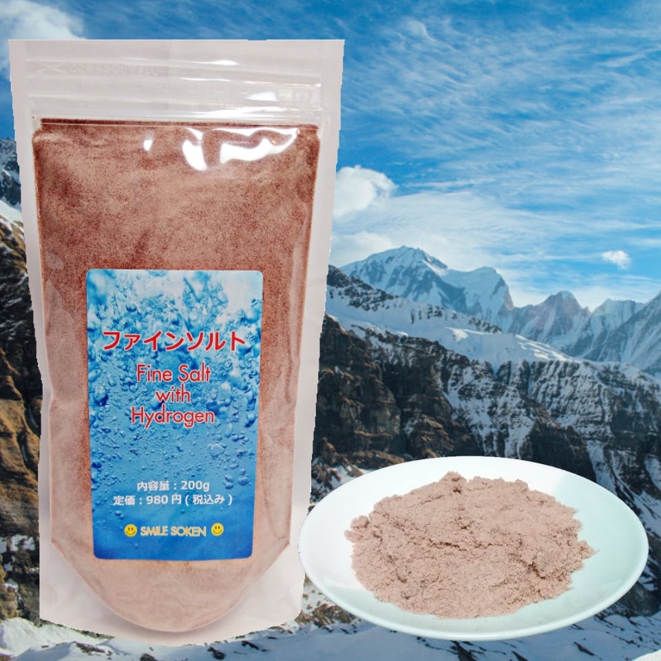 | ファインソルトは、天然ミネラルを豊富に含んだ 硫黄の香りがする岩塩です。 ナトリウム・カルシウム・カリウム・マグネシウム・鉄・硫黄・マンガンなどの ミネラルが豊富に含まれています。 酸化還元力があり、水道水100ccに対してわずか0.2g(耳かき半分)でも-200mV前後になります。 (水道水の酸化還元電位は 通常+500mv〜+700mvです。 場所・季節により数値が変動します) (酸化還元力とは、酸化、還元の度合いを数値で 表したものです。 マイナスになるほど還元力が高いことになります。) 普段のお料理に使うと 素材の味を引き出してくれます。 毎日、耳かき半分ほどを直接なめるのも おススメです。 硫黄の臭いが気になる方は、 一度火にかけると臭いが飛びます。 名称:ファインソルト食用 原材料名:岩塩 内容量:200g 保存方法:多湿を避け、常温で保存 栄養成分表示(100g当り) 熱量0kcal、タンパク質0g、脂質0g、 炭水化物0g、ナトリウム38.6g、 カルシウム102、カリウム555、 マグネシウム30.8、鉄60.6、 マンガン1.35、硫黄0.74g ファインソルトは、還元力にも優れた岩塩です。 還元とは酸化の反対です。 酸化は一般的に錆びる、 老化すると表現されます。 還元はその反対、 つまり、 老化を元に戻す作用です。 酸化の度合いを測定する場合、 酸化還元電位を用います。 酸化還元電位が+の値ということは 酸化させる力が強いことを示し、 −の値は還元する力が強いことを示します。 |