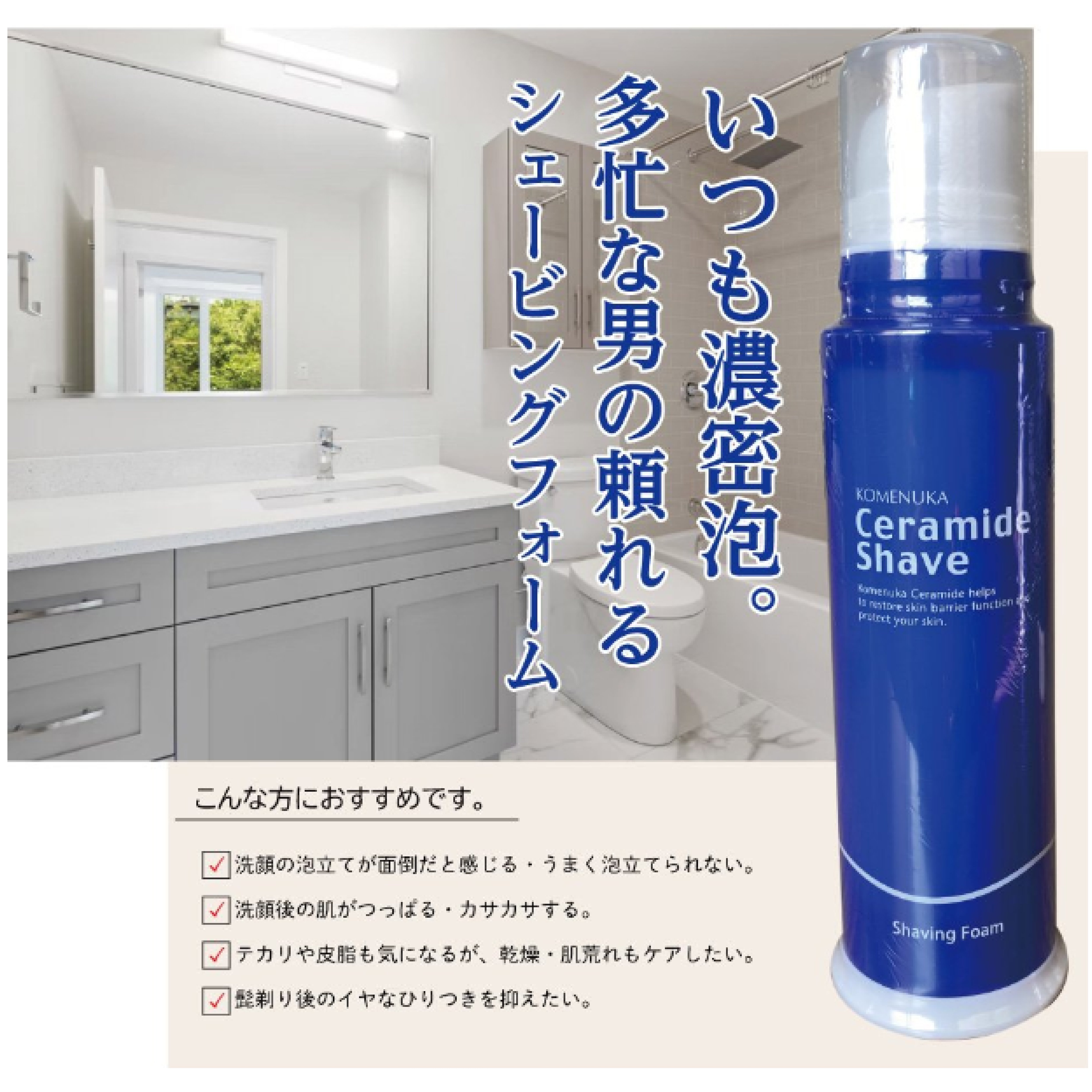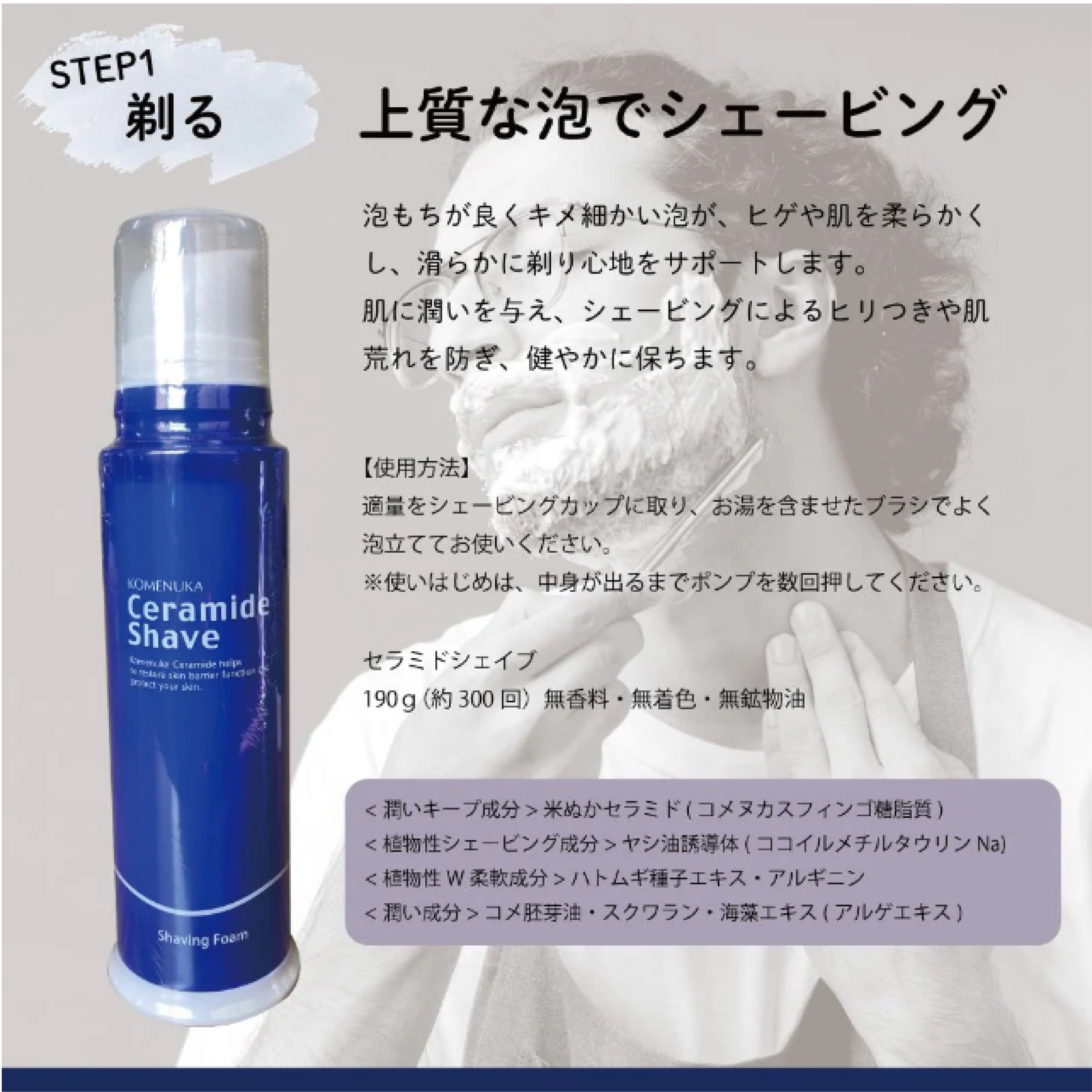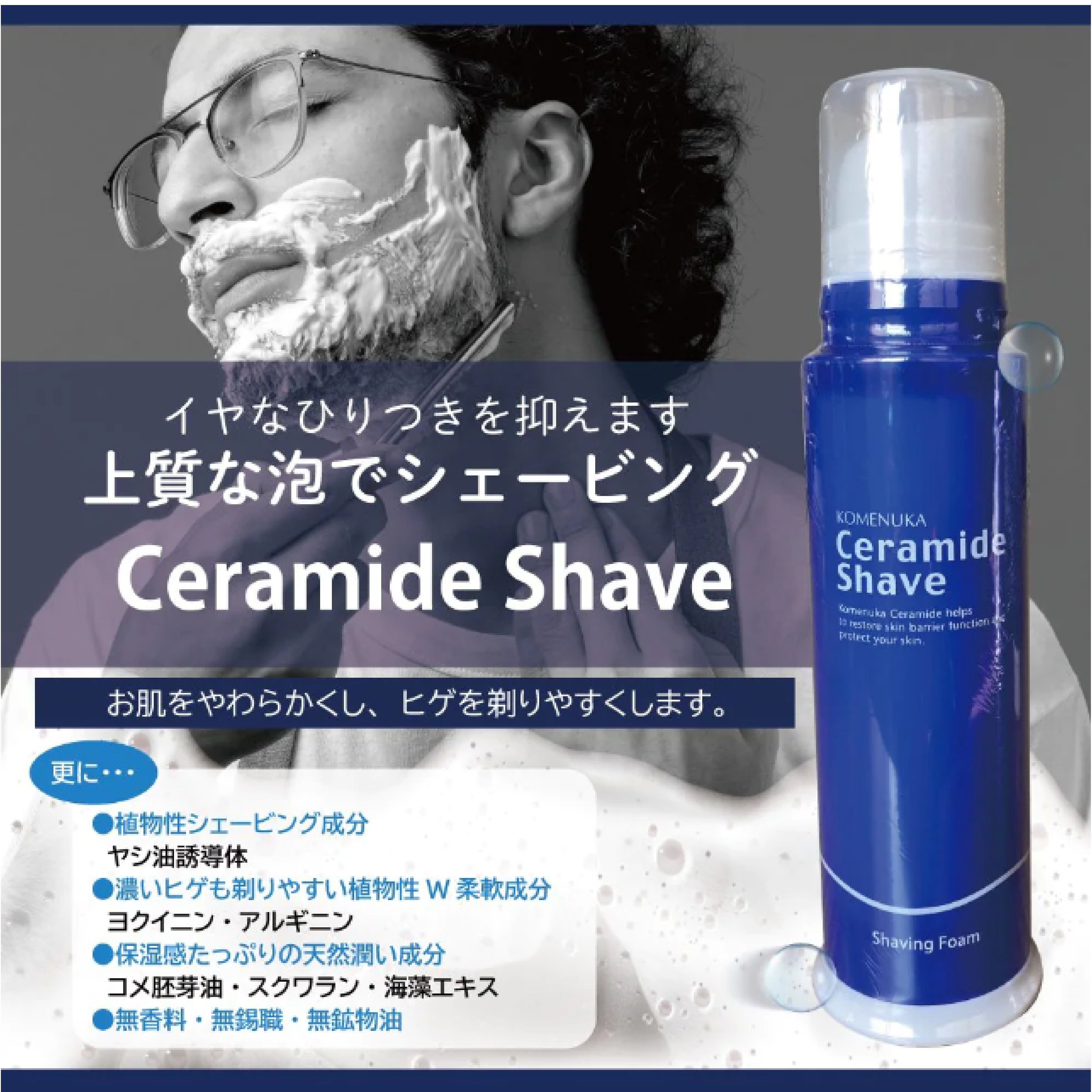 ひりつかないシェービング剤「リアル セラミドシェイブ(シェービングフォーム)190g」乾燥し、水分不足のお肌をしっかりと水分がキープできる JAN: |