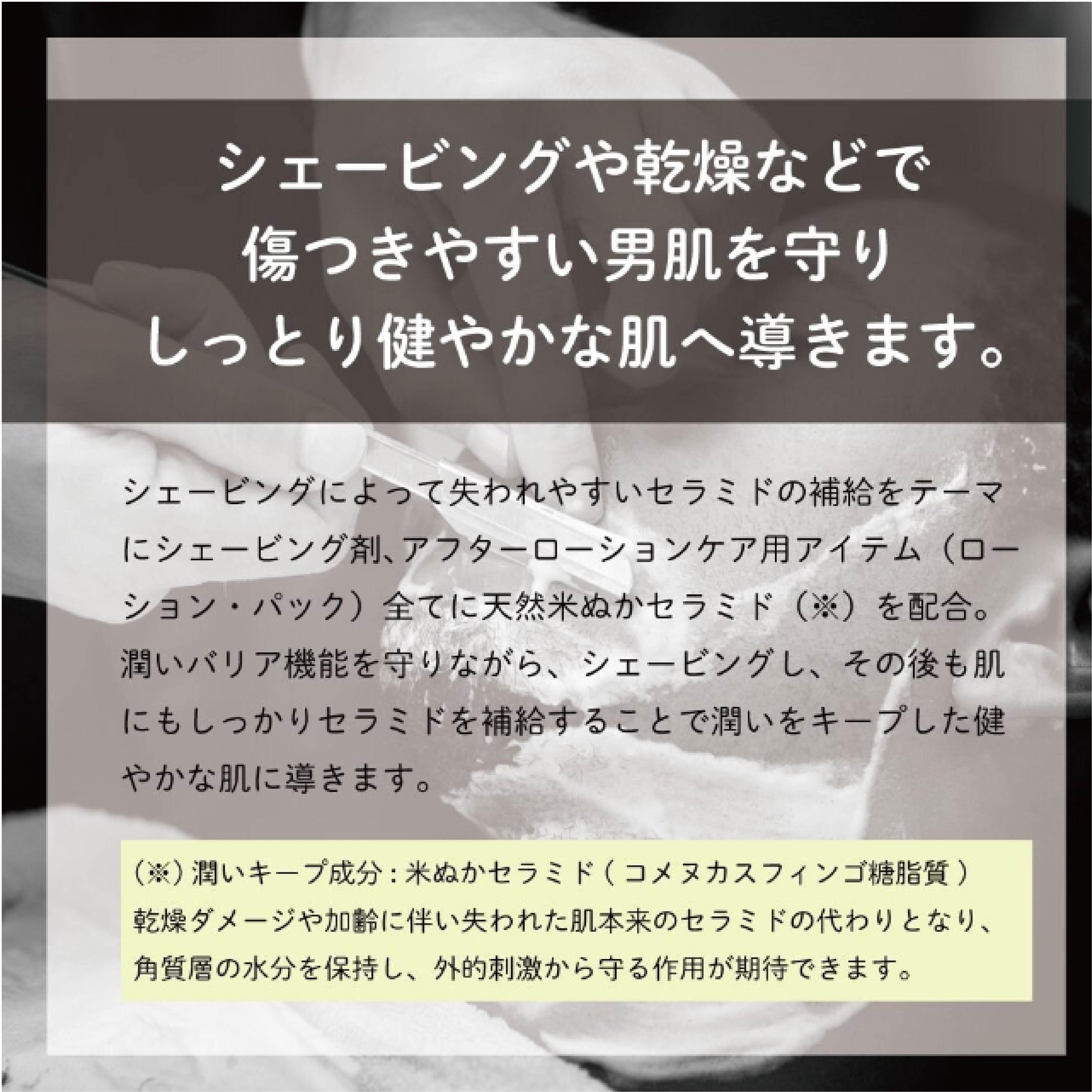 肌をやわらかくし、ヒゲを剃りやすくします。 |