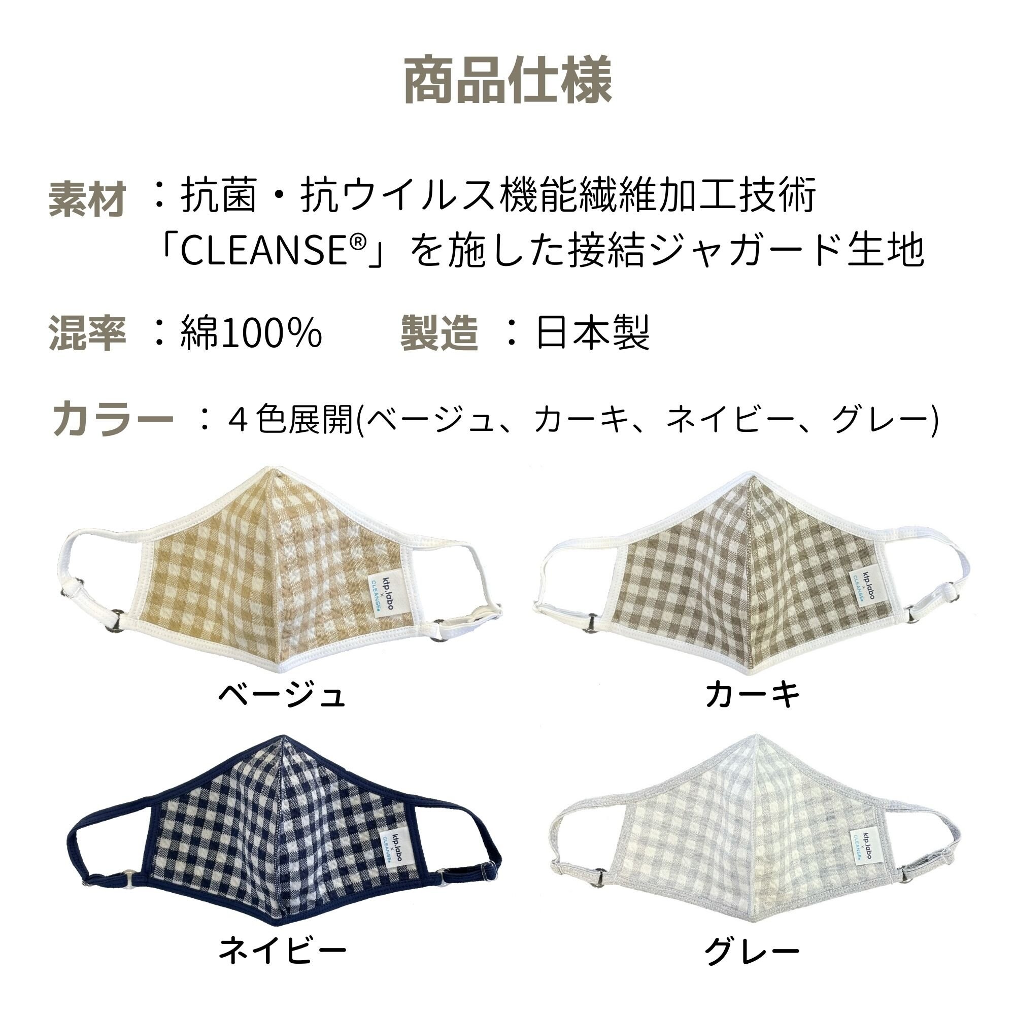 抗菌・抗ウイルスマスク ギンガムチェック | 4カラー 2サイズ マスク 布マスク 柄洗える繰り返し使える 調節機能付き 日本製 国産 綿100% 肌に優しい 個包装 男女兼用 大人用 子供用 小学生 中学生 園児 シンプル グレー ベージュ カーキ ネイビー おしゃれ かわいい JAN: |