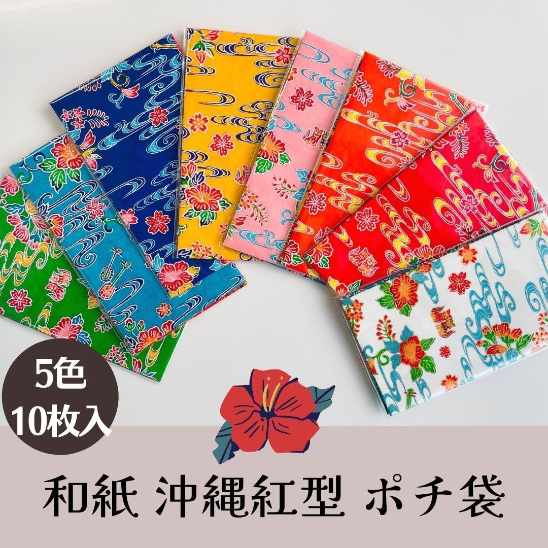 沖縄 和紙紅型デザイン【ポチ袋】多目的袋|お札袋|封筒|お年玉袋|おまかせ5色10枚セット【送料込】 JAN: |