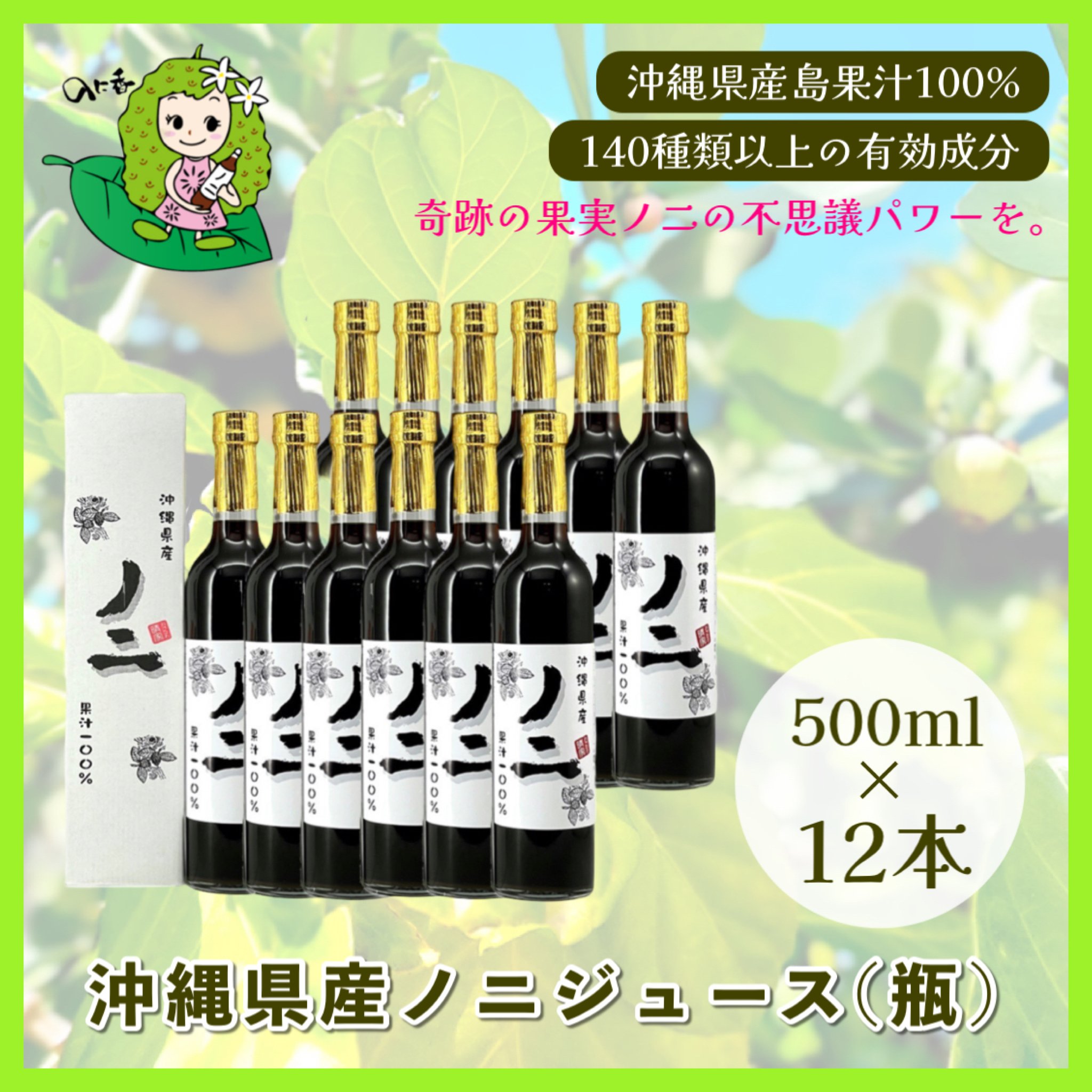 【送料無料/12本セット】沖縄県産ノニジュース(瓶) 500ml×12本/140種類以上の有効成分を含む「奇跡の果実ノニ」 JAN: |
