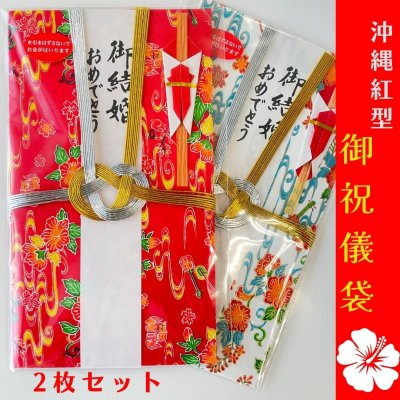 御祝儀袋(結び切り) 沖縄 和紙紅型デザイン(赤色・白色)2枚セット【送料込み】